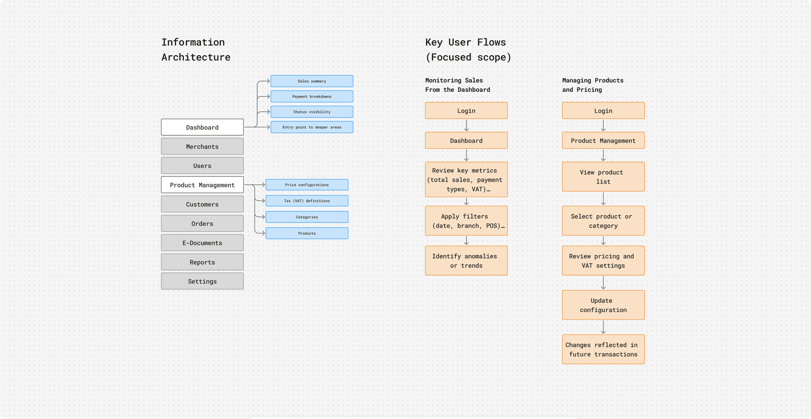 I worked closely with a domain expert who had deep knowledge of merchant operations, POS flows and regulatory constraints. This collaboration replaced direct user interviews during early stages due to access limitations.
